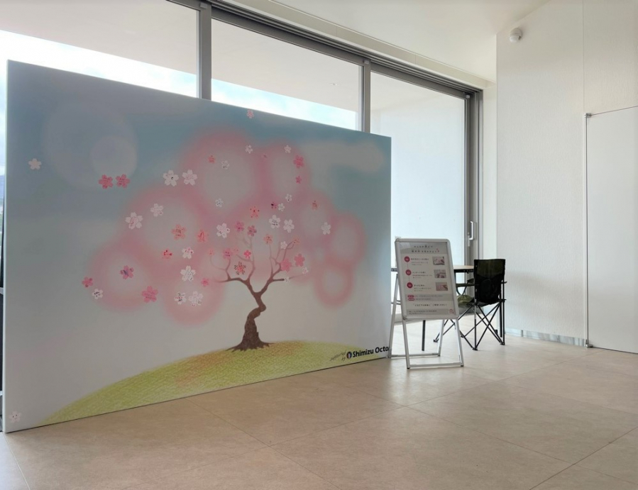 袖ケ浦市役所南庁舎1階 市民交流広場に桜の木メッセージボードを設置しました!